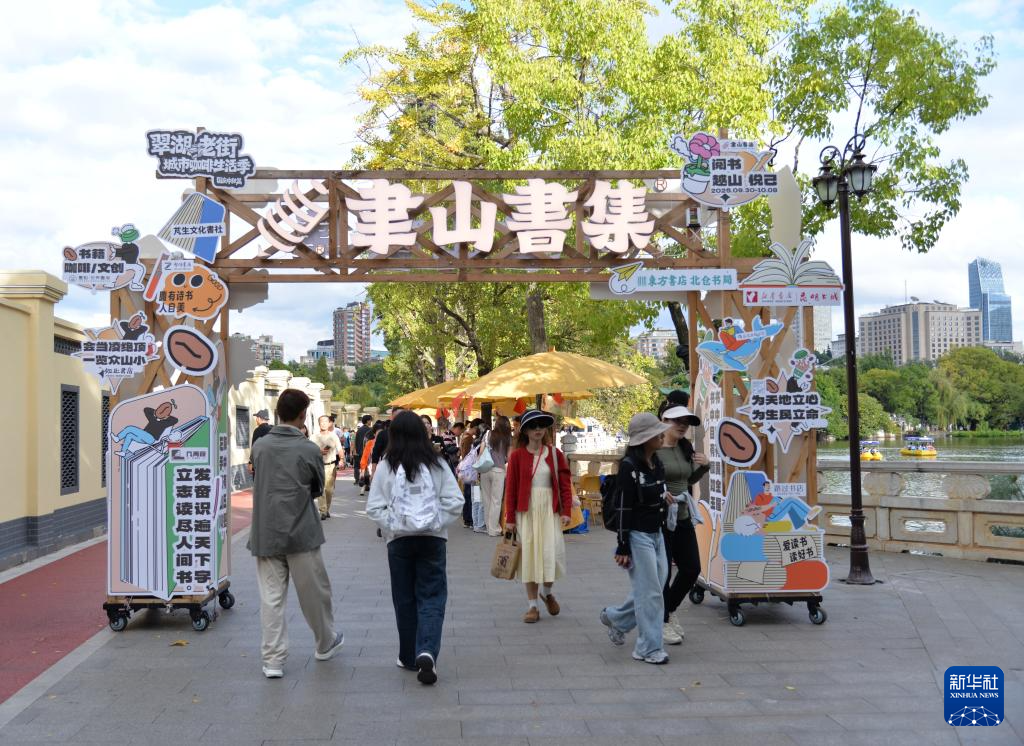 10月3日,游客在云南昆明翠湖公园举办的市集上游览、购物。