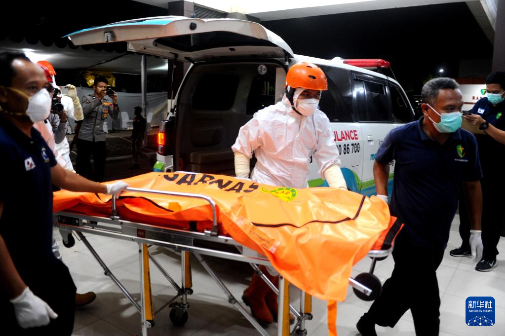 10月4日,医护人员在印度尼西亚东爪哇省泗水市一家医院转运遇难者遗体。