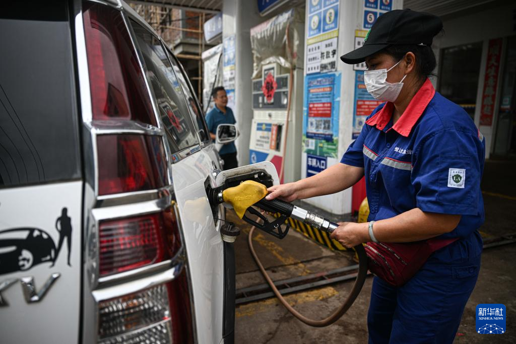10月6日,在海南文昌一家加油站,工作人员为车辆加油。