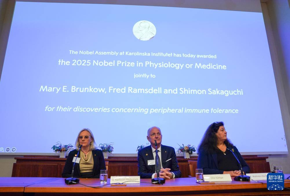 瑞典卡罗琳医学院10月6日宣布,三名科学家因在外周免疫耐受方面的研究贡献获得2025年诺贝尔生理学或医学奖。