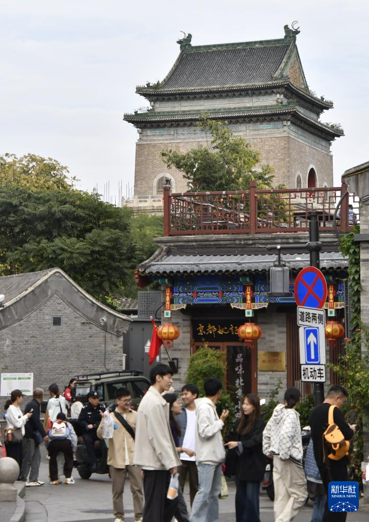 10月6日,游客游览北京钟鼓楼附近的小街巷。