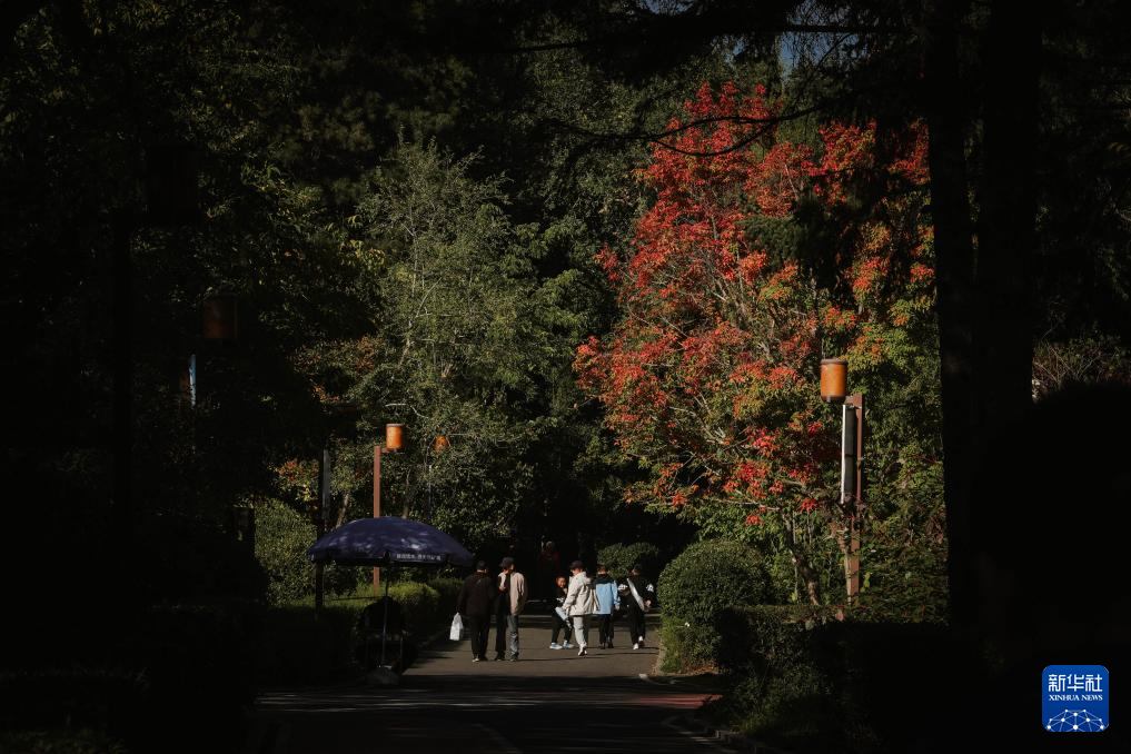 10月6日,游客在长春市南湖公园观赏红叶。
