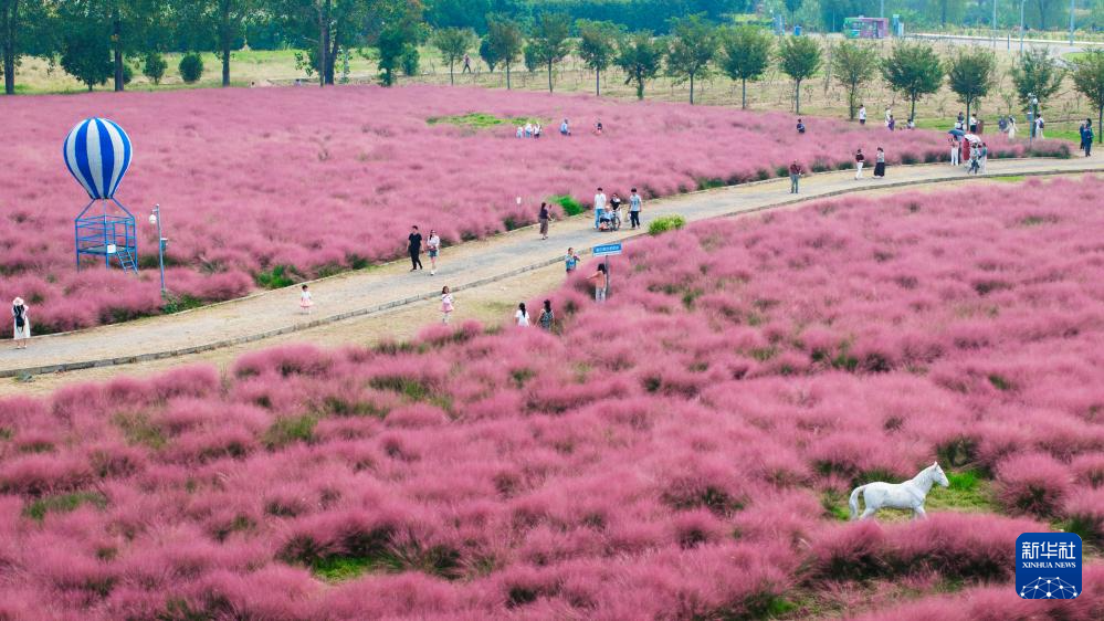 10月5日,人们在南京八卦洲陌上花渡游玩(无人机照片)。
