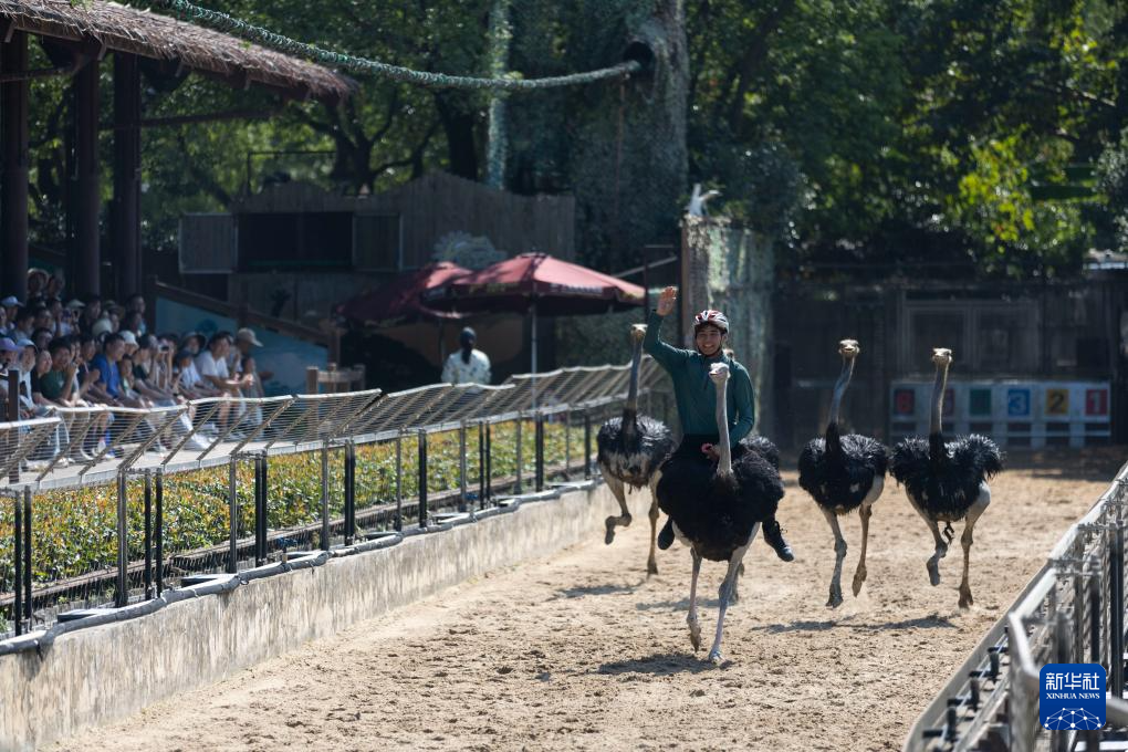 10月6日,人们在上海野生动物园观看奔跑中的鸵鸟。