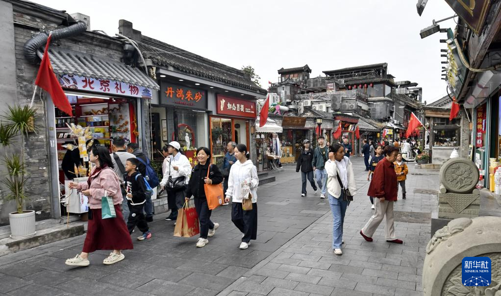 10月6日,游客在北京烟袋斜街游览。