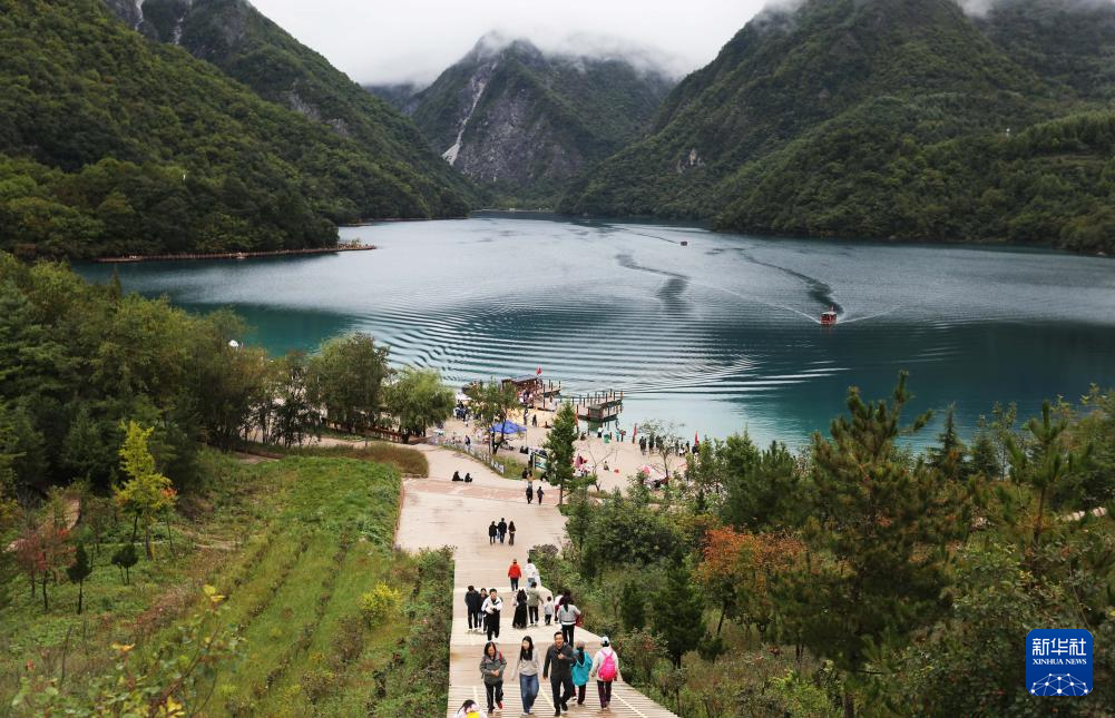 10月6日,游客在甘肃省陇南市文县境内的天池景区游玩。