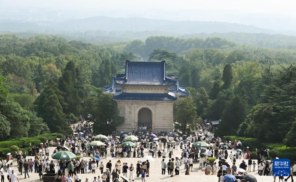 10月5日,人们在南京中山陵景区游览。