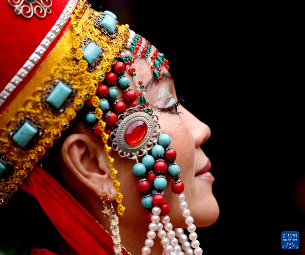 10月5日,一名身着蒙古族服饰的演员准备在英国伦敦举行的中秋节庆祝活动上表演。
