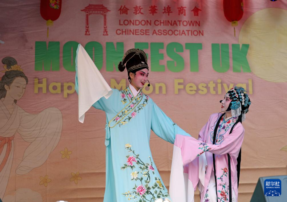 10月5日,演员在英国伦敦举行的中秋节庆祝活动上表演戏曲。