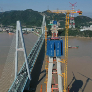10月6日23时许,历经约33个小时连续施工,由中国铁建大桥局承建的甬舟铁路桃夭门公铁两用大桥6号主塔顺利合拢,标志着该项目关键控制性工程取得重大突破,为后续桥梁上部结构施工奠定坚实基础。