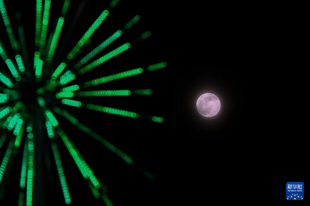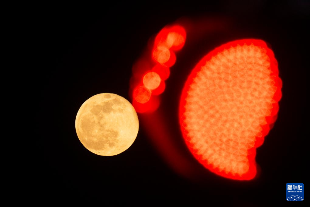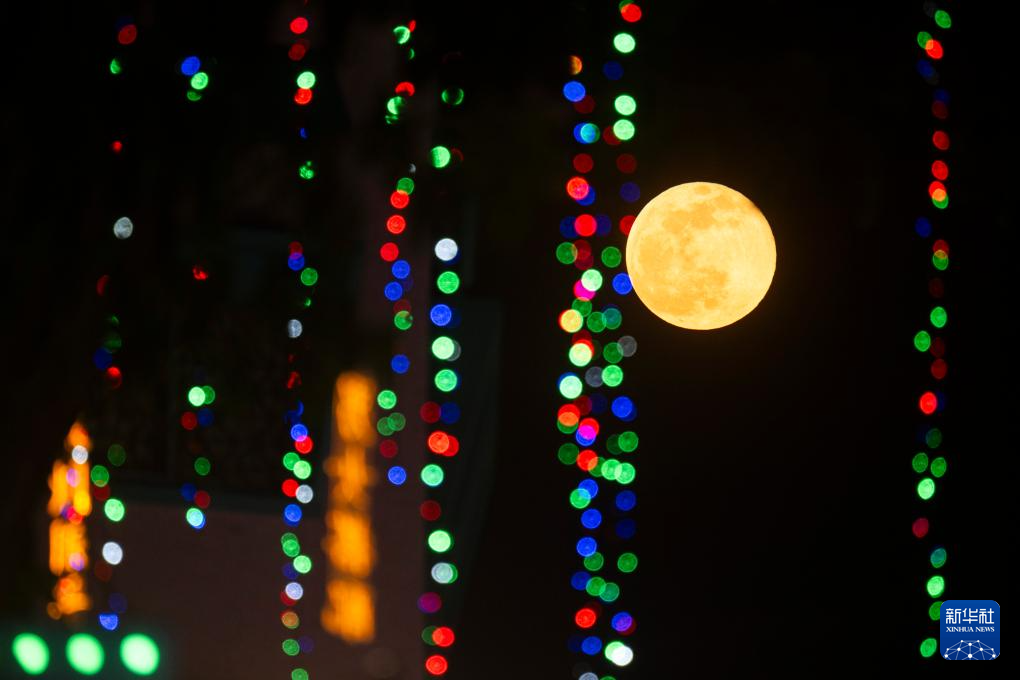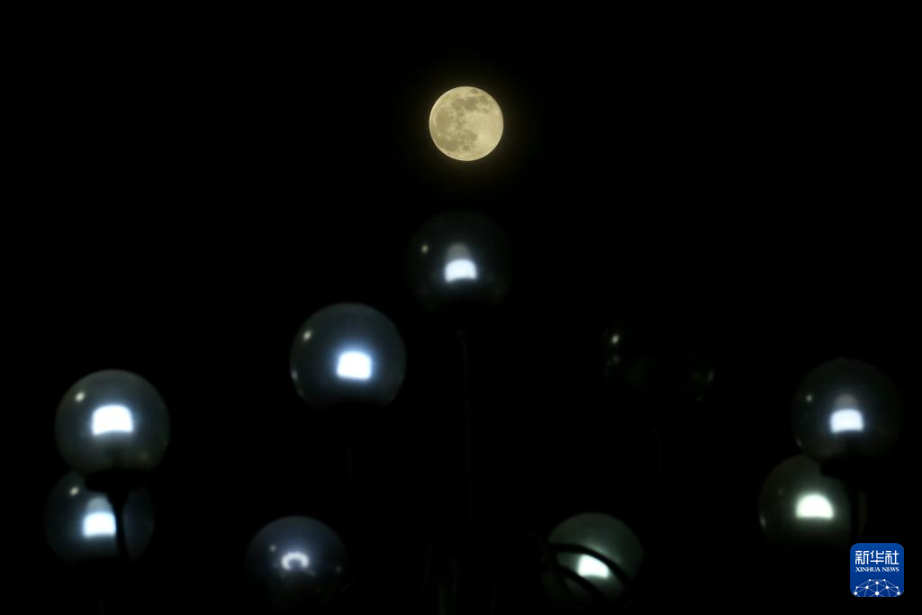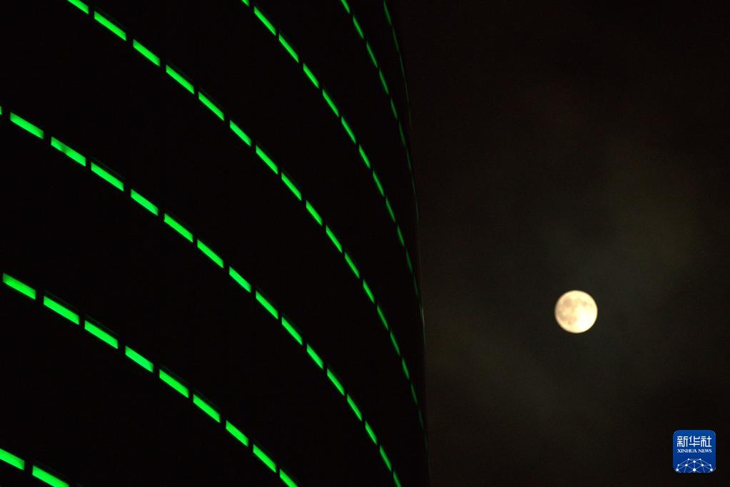 10月7日,圆月在新加坡上空升起。
