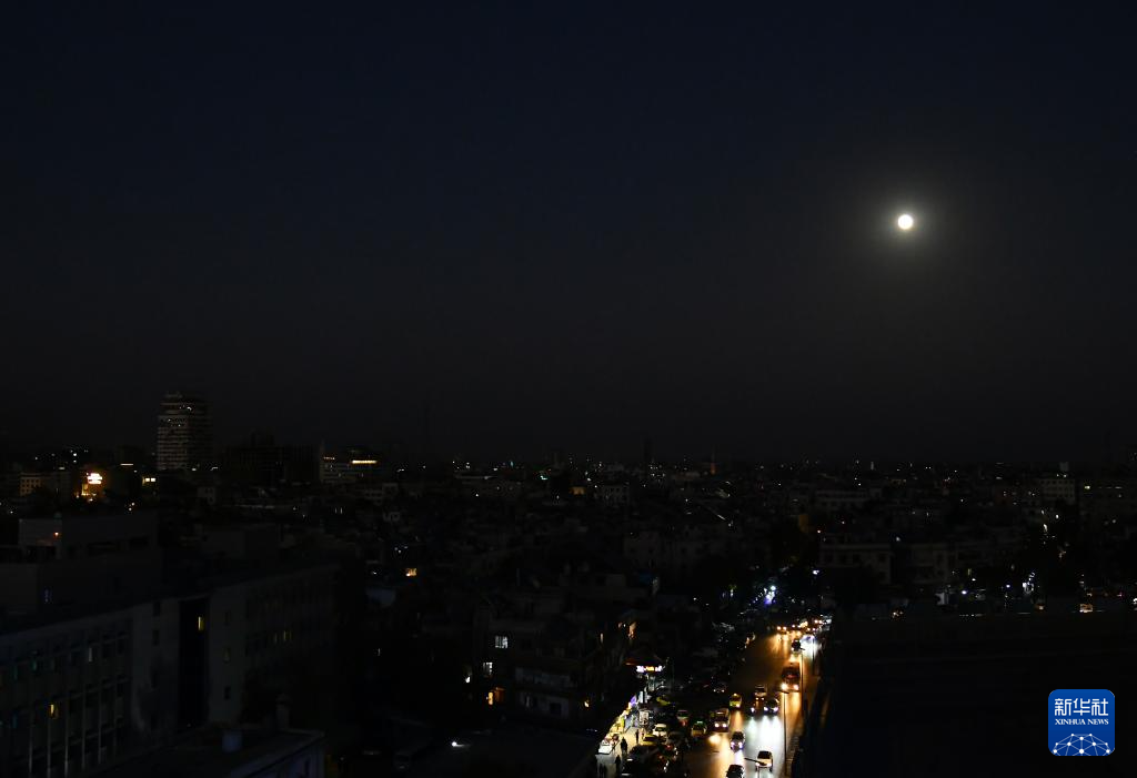 这是10月6日在叙利亚首都大马士革拍摄的月亮。