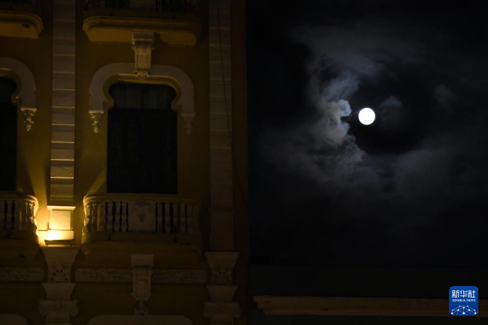 这是10月6日在古巴首都哈瓦那拍摄的月亮。