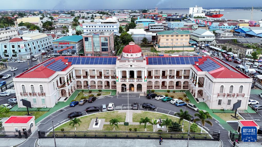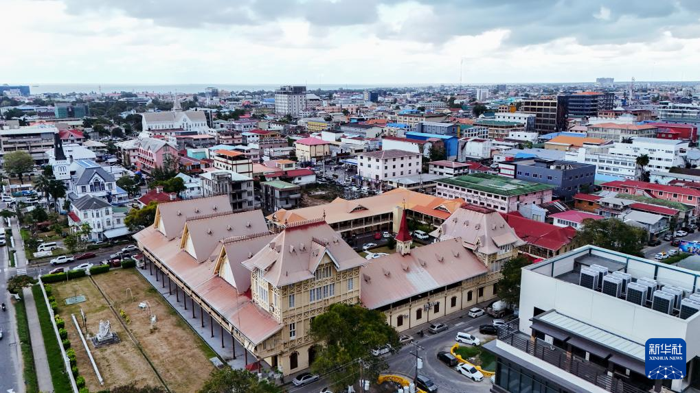 这张10月3日拍摄的无人机照片显示,位于圭亚那首都乔治敦的圭亚那国会大厦。