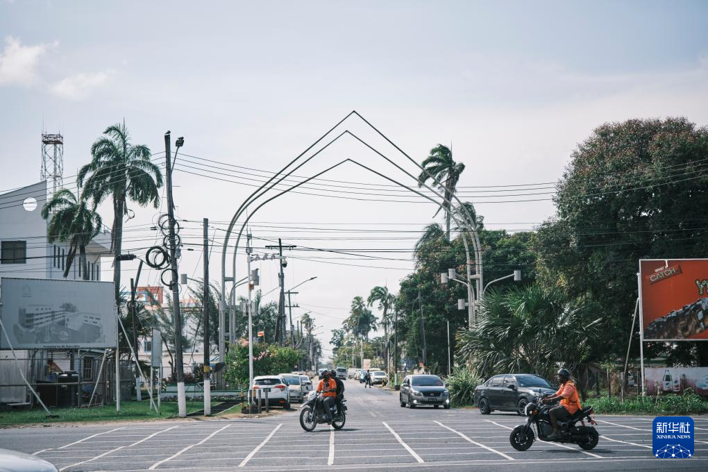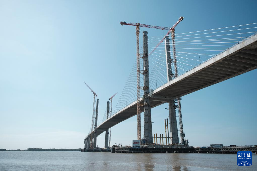 这是10月2日在圭亚那首都乔治敦拍摄的中企承建的巴拉特·贾格迪奥-德梅拉拉河大桥。大桥全长约2900米,是圭亚那迄今规模最大、技术最复杂的交通基础设施工程,于10月5日举行通车仪式。