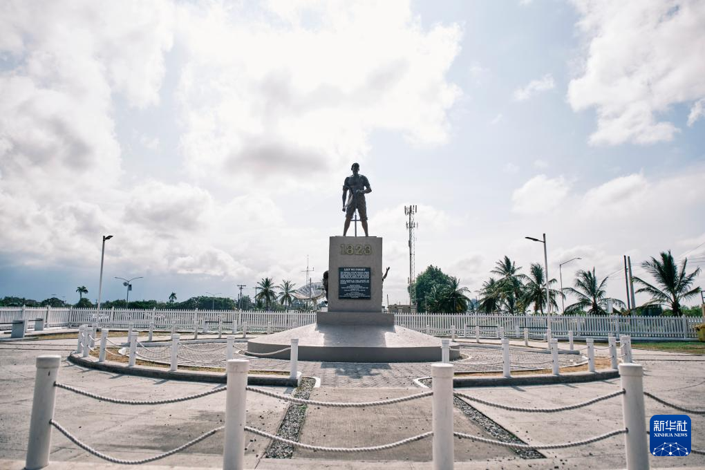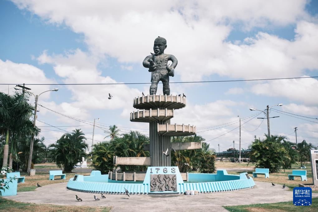 这是10月3日在圭亚那首都乔治敦拍摄的1763年奴隶起义纪念碑。