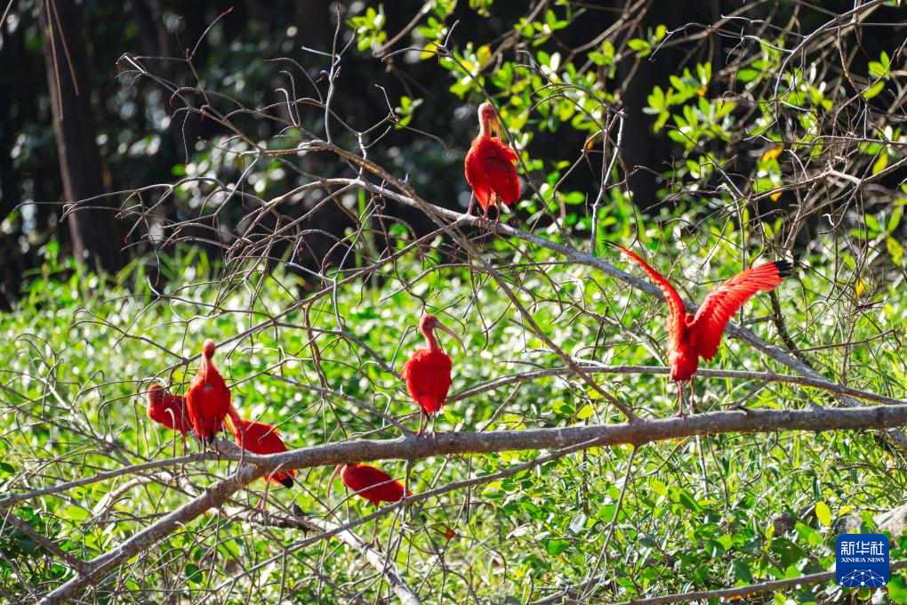 这是10月2日在圭亚那首都乔治敦附近德梅拉拉河畔拍摄的美洲红鹮。