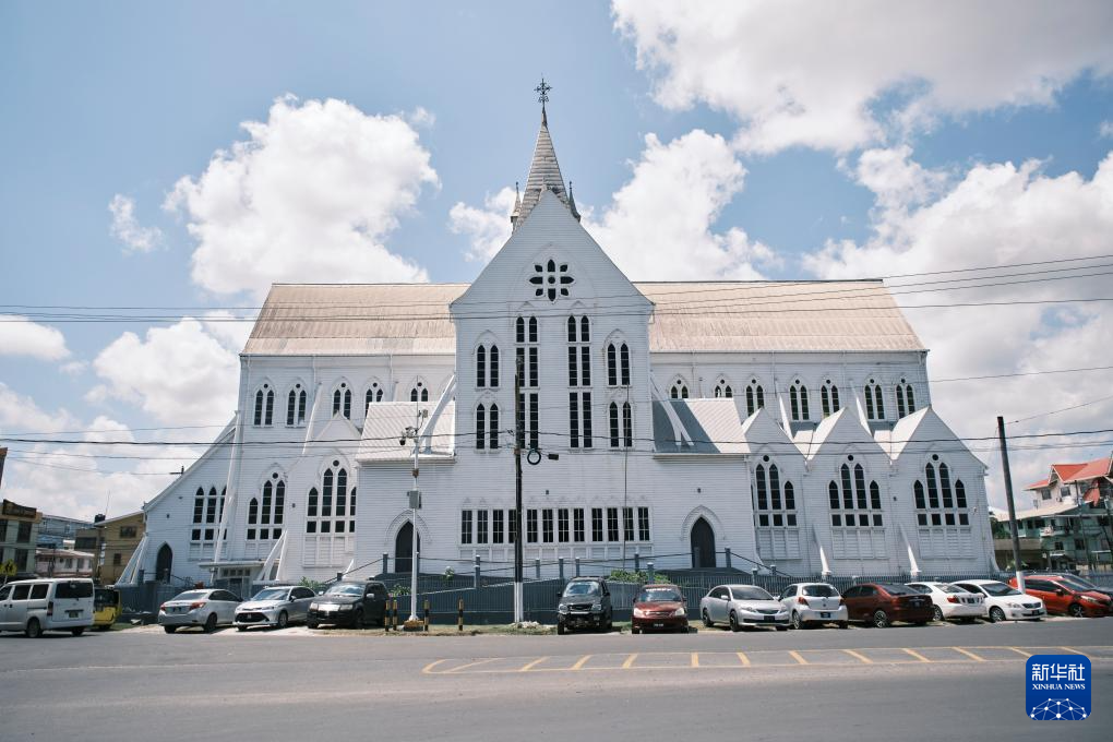 这是10月2日在圭亚那首都乔治敦拍摄的木质结构的圣乔治大教堂。