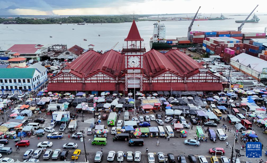 这张10月3日拍摄的无人机照片显示,位于圭亚那首都乔治敦的斯塔布鲁克市场。