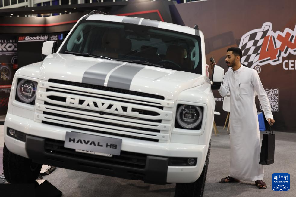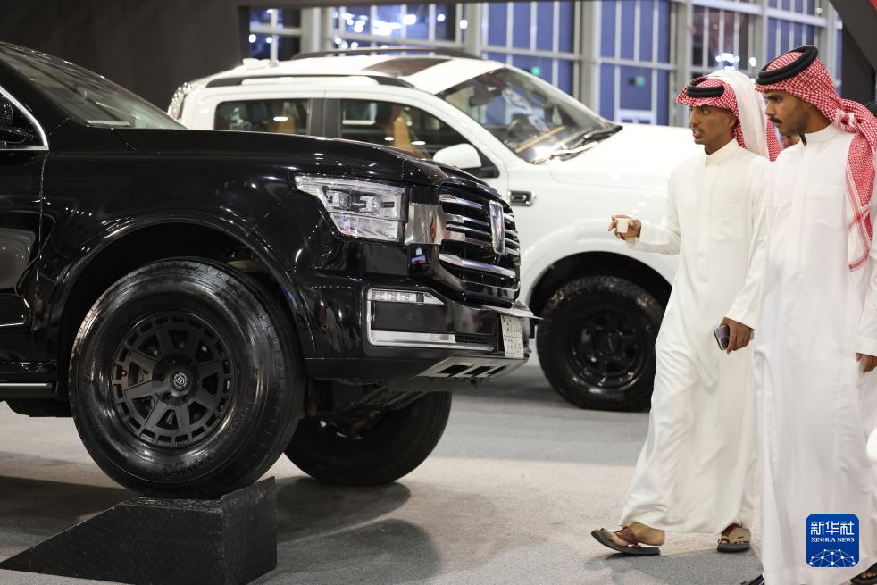 10月6日,在沙特阿拉伯首都利雅得,沙特观众参观中国越野汽车品牌的展台。