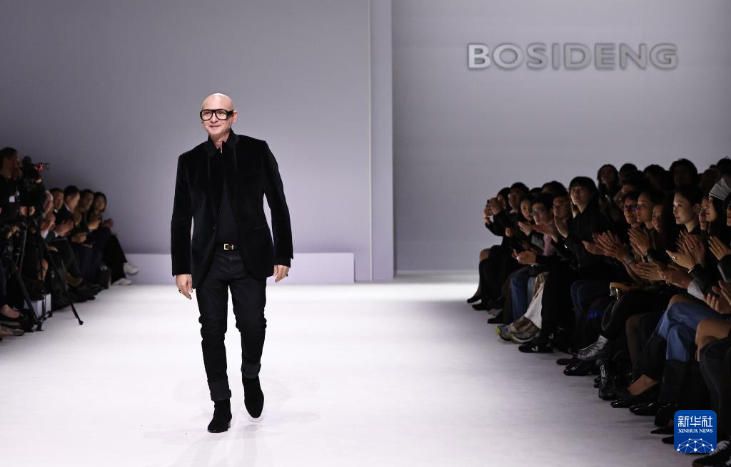 10月7日,在位于法国巴黎的布龙尼亚宫,波司登品牌创意总监彼得罗·费拉吉纳向观众致意。
