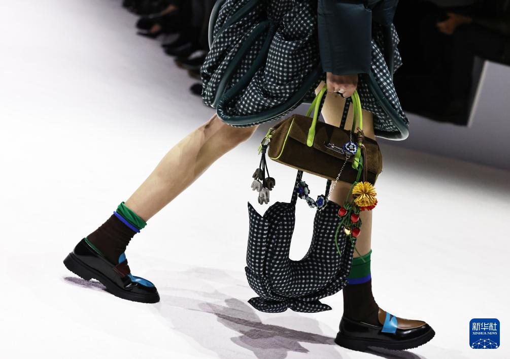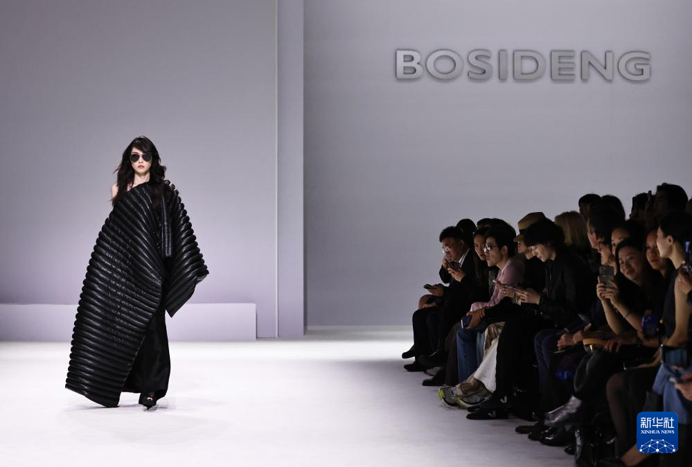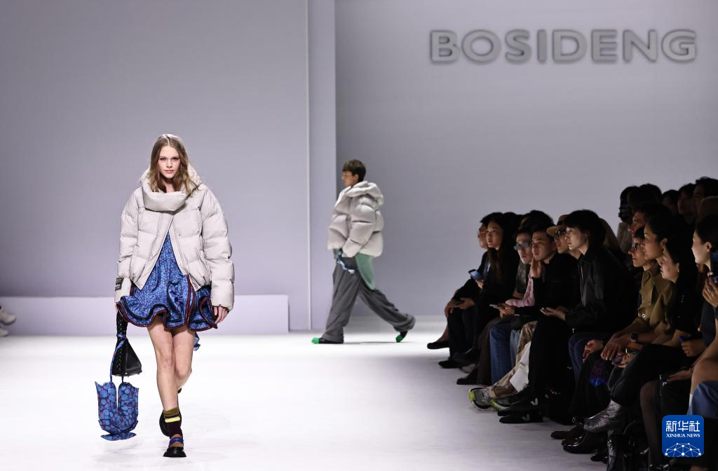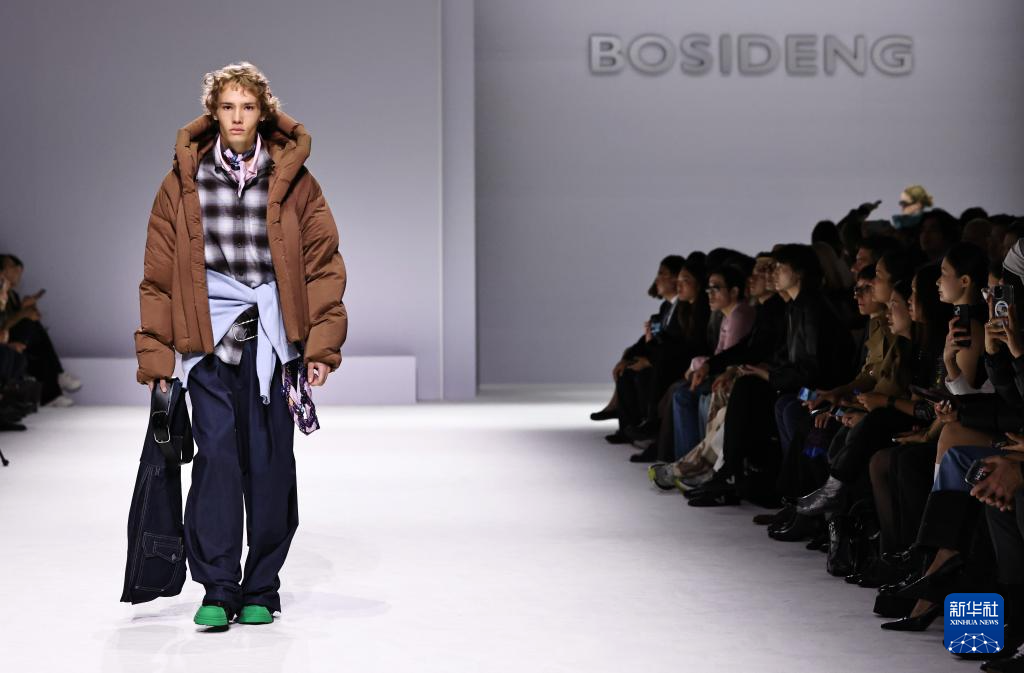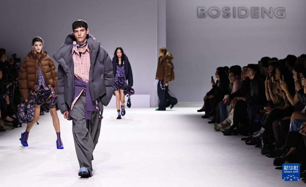 10月7日,在位于法国巴黎的布龙尼亚宫,模特展示中国品牌波司登“大师泡芙”系列新品。