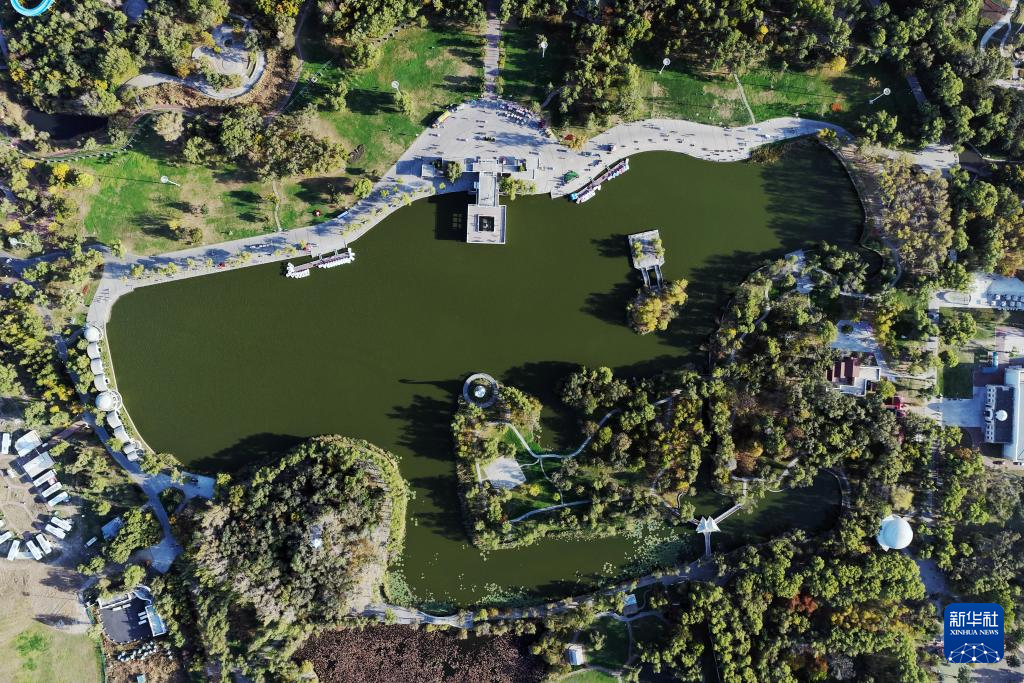 这是10月7日拍摄的哈尔滨太阳岛国家湿地公园景色(无人机照片)。
