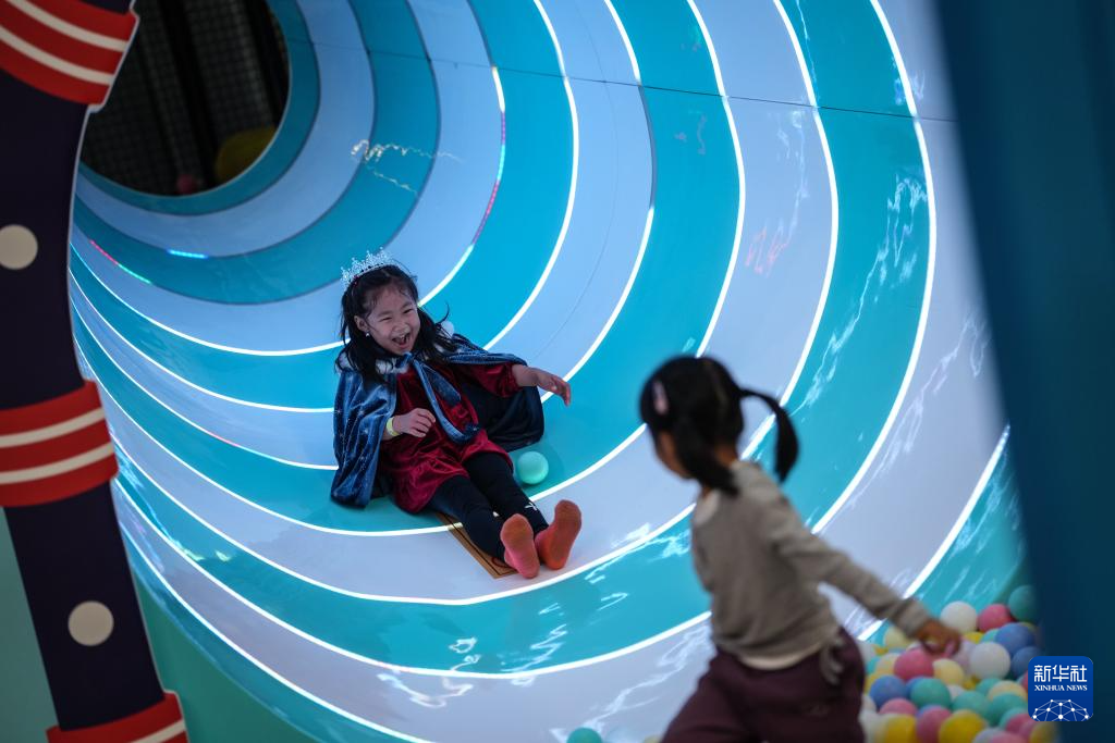 10月8日,小朋友在沈阳粮仓文化产业创意园内的“快乐专+”游乐场体验游乐项目。
