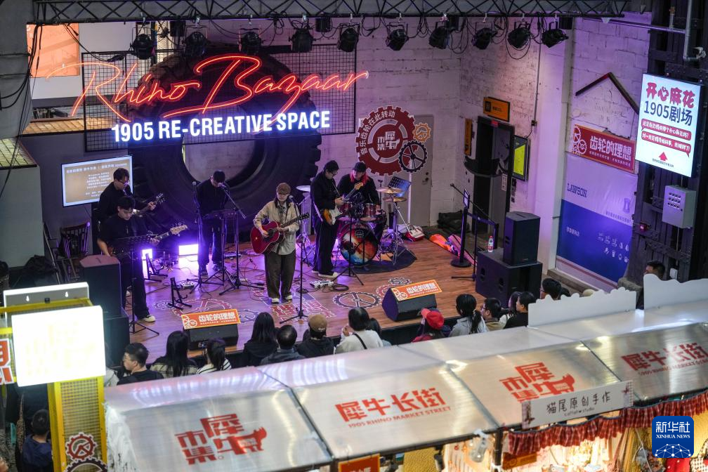10月6日,游客在沈阳1905文化创意园内观看乐队演出。