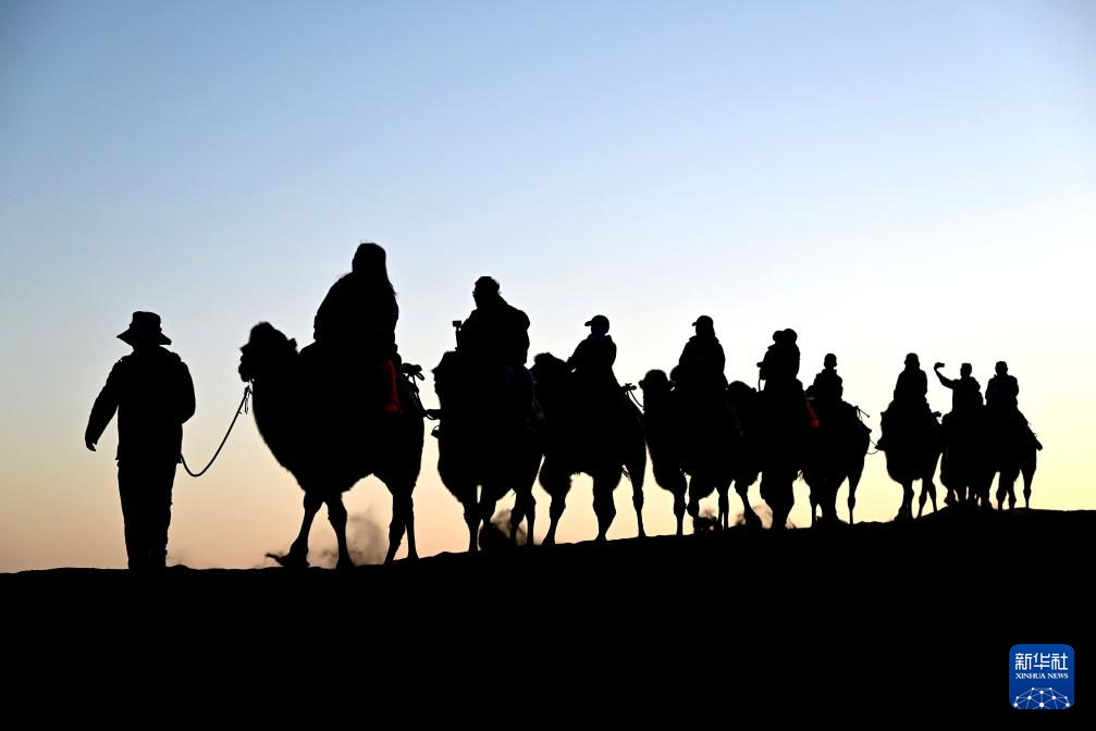 10月1日,游客在甘肃省敦煌市鸣沙山月牙泉景区游览。