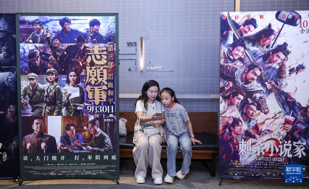 10月1日,观众在湖北省武汉市百丽宫影城等待进场看电影。