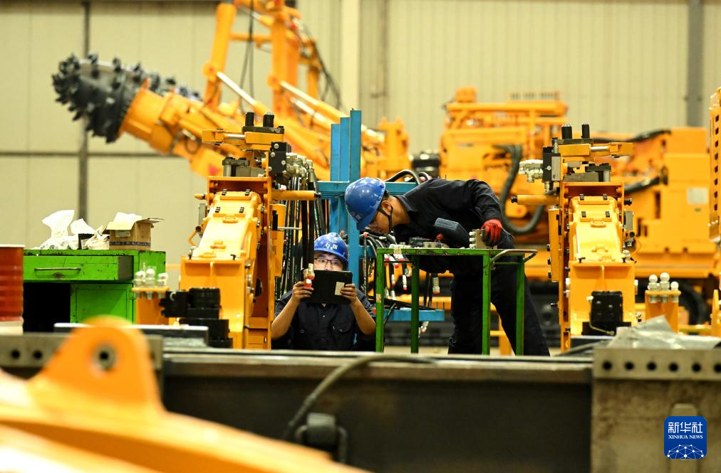 10月9日,在河北石家庄装备制造产业园,技术人员在石家庄煤矿机械有限公司装配车间忙碌。