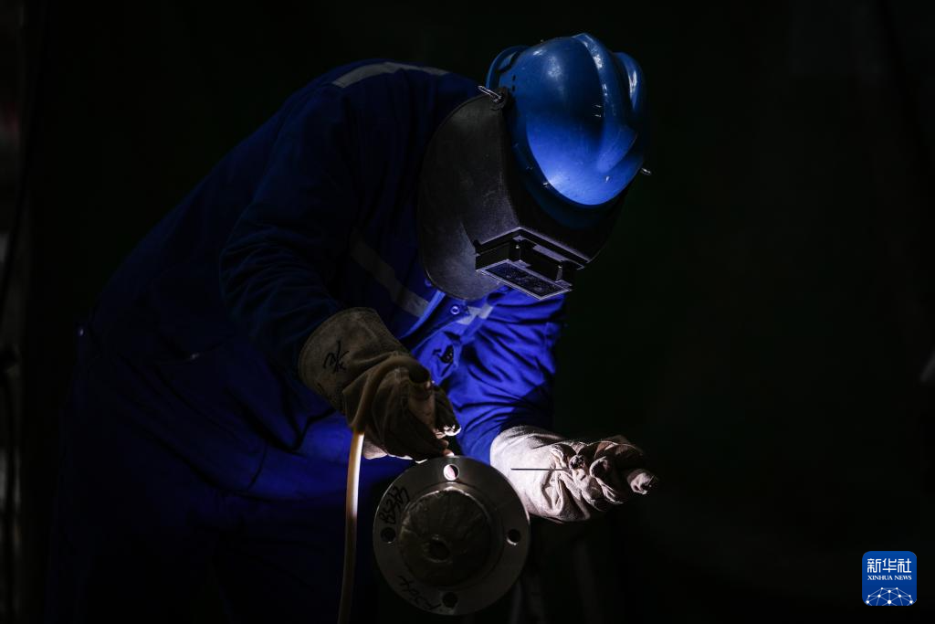 10月10日,工作人员在华锦阿美精细化工及原料工程项目现场施工。