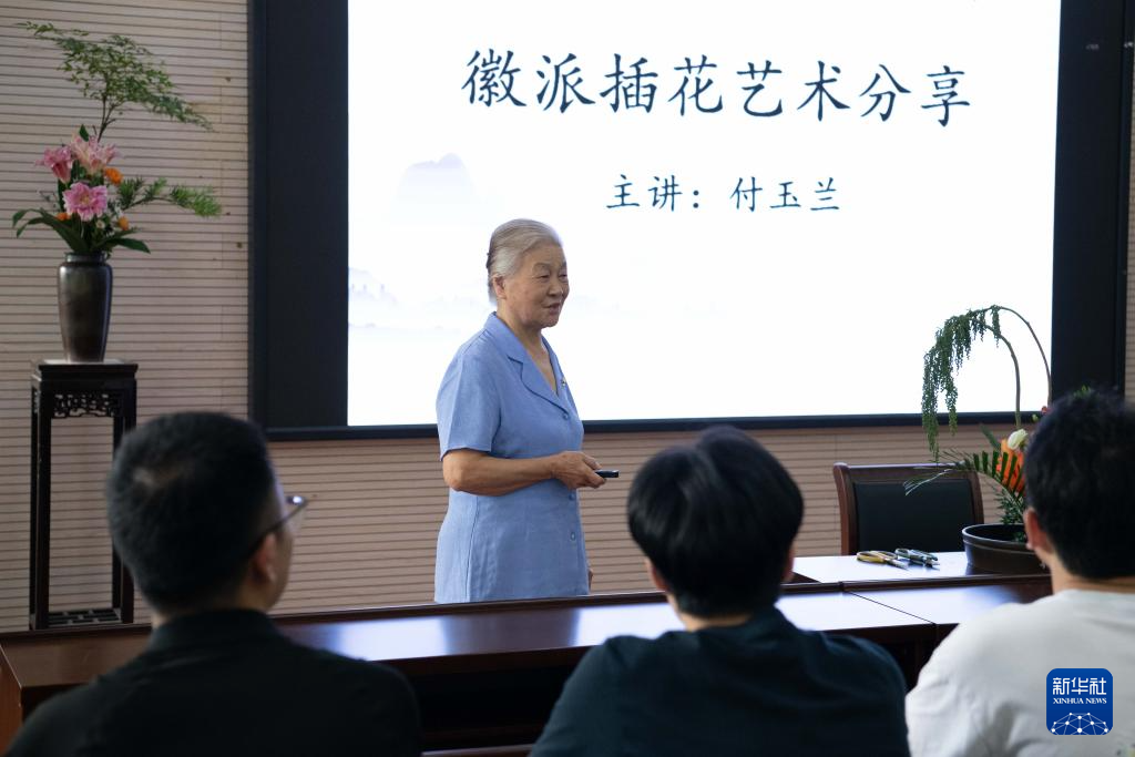 多年来,付玉兰与徽派插花艺术传承团队成员深挖安徽地域文化,将民俗、自然风貌与传统插花艺术融合。2022年,徽派插花艺术被列入安徽省省级非物质文化遗产项目。