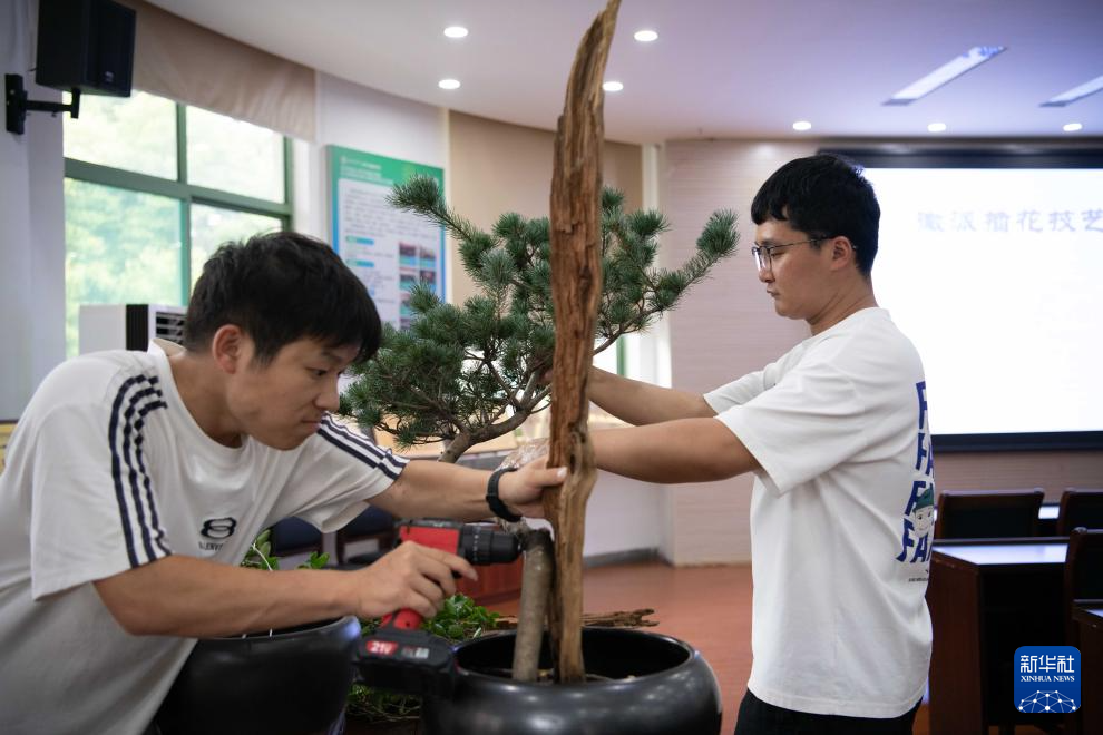 9月29日,在安徽农业大学林学与园林学院徽派插花艺术传承基地,徽派插花艺术传承团队成员进行插花艺术创作。