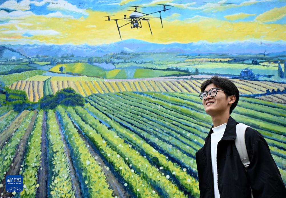 10月11日,孟成从青岛农业大学校园内一处大型乡村振兴主题墙绘前经过。