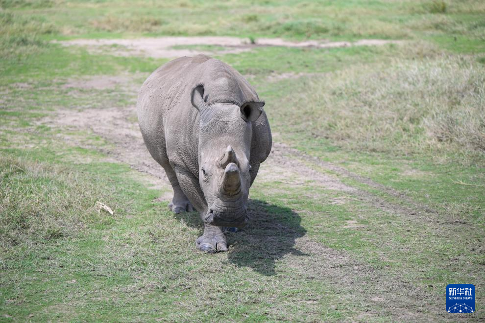 这是10月7日在肯尼亚中部莱基皮亚郡奥尔佩杰塔自然保护区拍摄的雌性北方白犀牛“法图”。