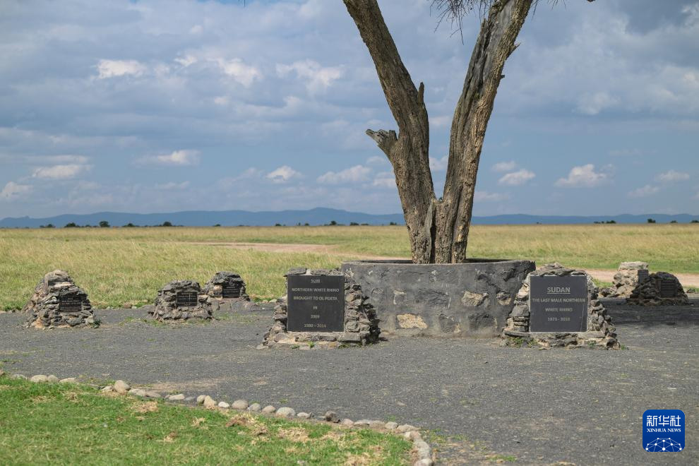 这是10月7日在肯尼亚中部莱基皮亚郡奥尔佩杰塔自然保护区拍摄的过世犀牛的纪念碑。