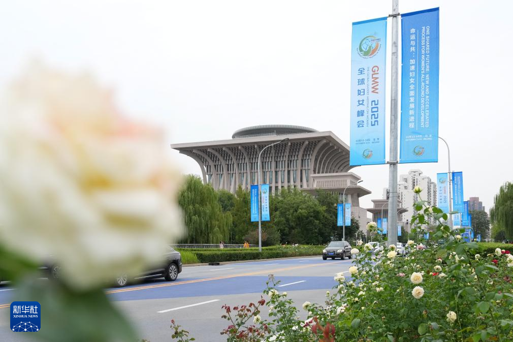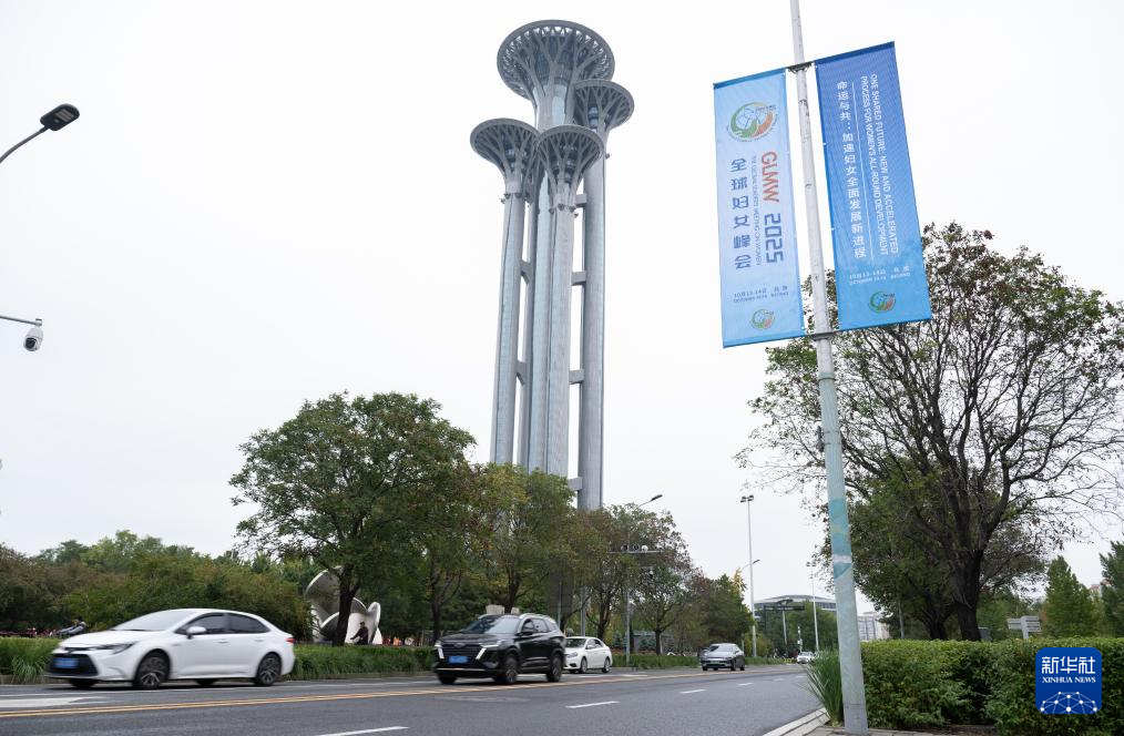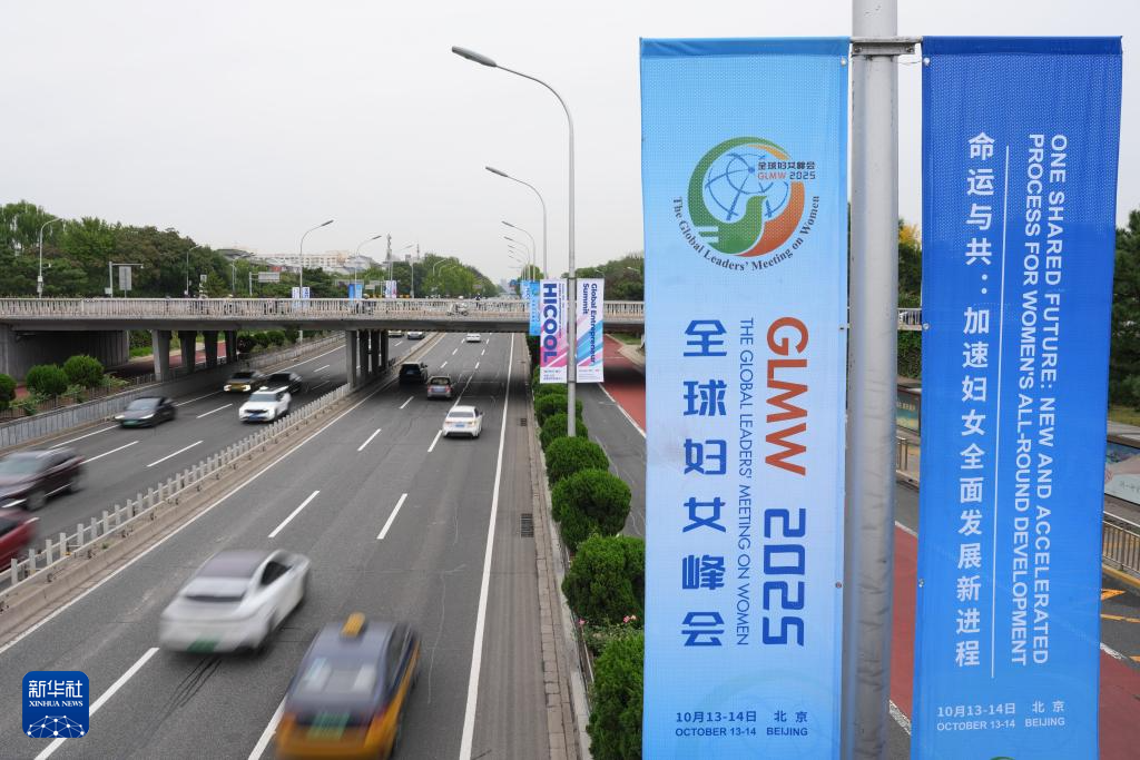 这是10月11日在北京街头拍摄的全球妇女峰会道旗。
