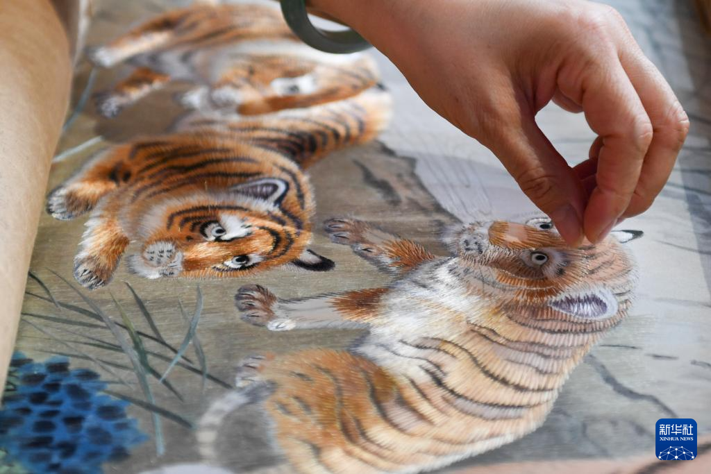 多年来,江再红走进大中小学授艺,带徒传承,积极推广湖湘文化和非遗技艺,培养大批湘绣传人……江再红和团队尝试通过数字化设计、跨界联名、沉浸式体验等形式,探索湘绣的创新发展之路。
