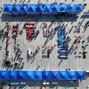 10月13日,由甘肃省防灾减灾救灾委员会办公室、甘肃省应急管理厅主办的第36个国际减灾日省级主会场活动在兰州市东方红广场举行(无人机照片)。