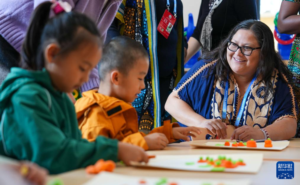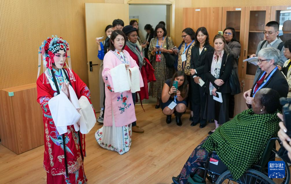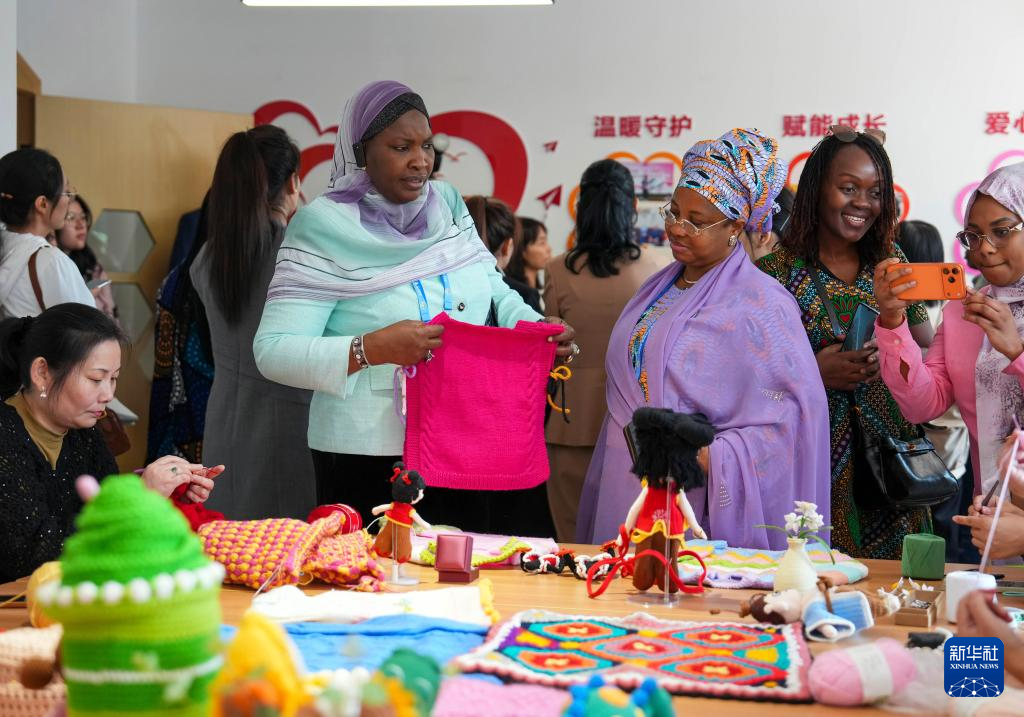 10月14日,全球妇女峰会参会嘉宾在北京市顺义区妇女儿童社会服务中心参访。