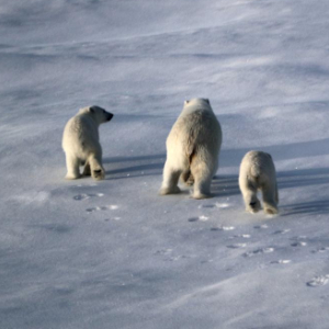 8月30日夜,在距离中国第15次北冰洋科学考察队长期冰站作业结束还剩一天时,一只北极熊妈妈带着两只熊宝宝出现在了考察队员搭乘的“雪龙2”号极地科考破冰船船边。