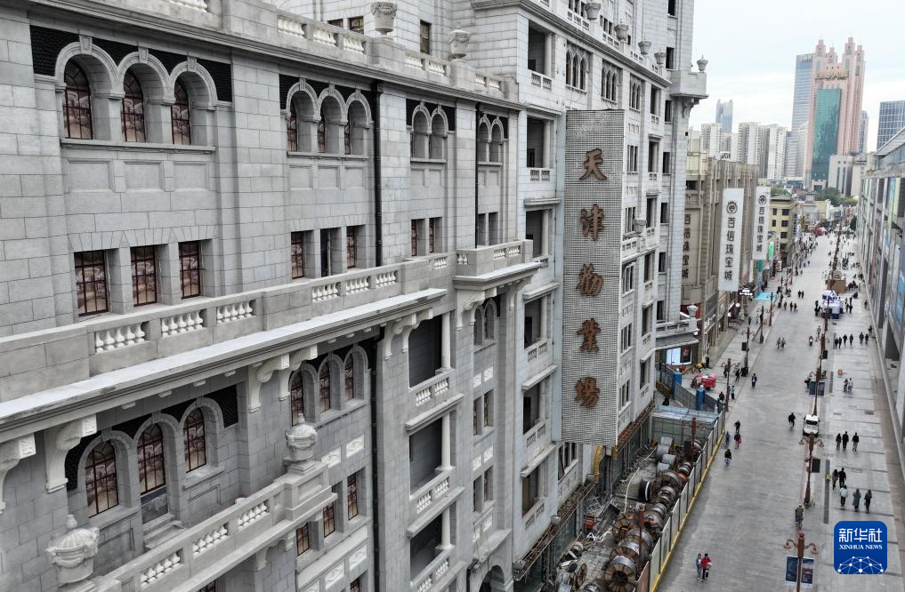 近日,天津劝业场保护修缮工程完成外立面修复,内部改造工作正稳步推进,预计今年12月31日前竣工验收。