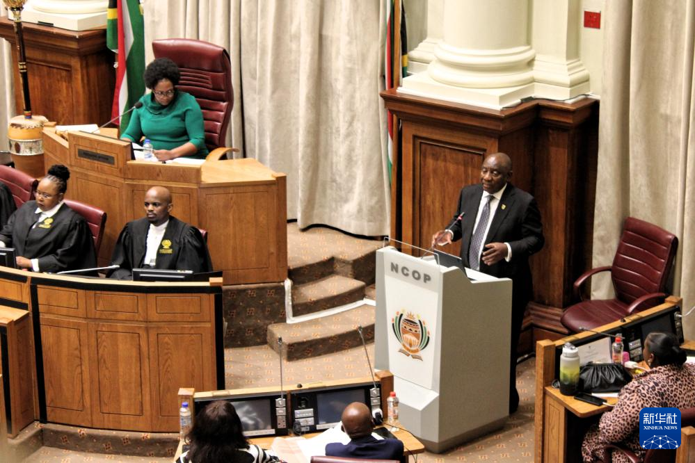 10月14日,在南非开普敦,南非总统拉马福萨(右二)在南非全国省级事务委员会(即议会上院)回答议员提问。