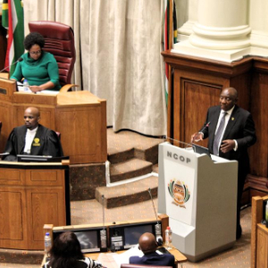 10月14日,在南非开普敦,南非总统拉马福萨在南非全国省级事务委员会(即议会上院)回答议员提问。