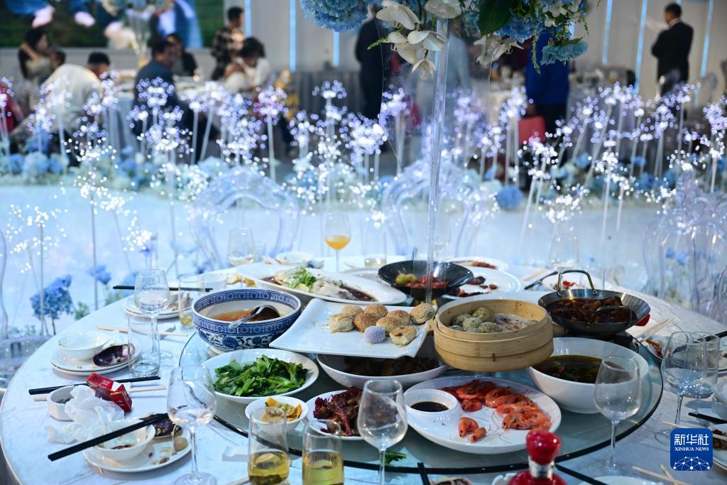 10月15日,在安徽合肥一个婚宴现场,宾客离去后桌上剩余大量餐食。