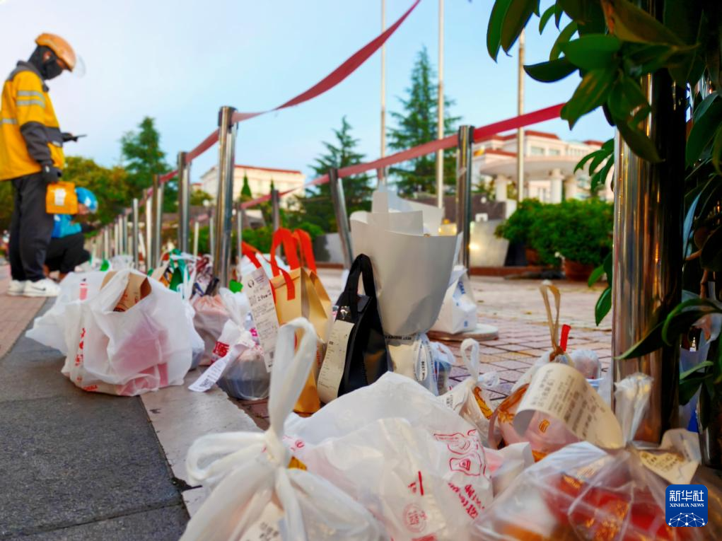 在云南昆明某大学门口堆积的外卖(10月11日摄)。其中一些外卖数日无人领取,不仅造成粮食浪费,还易腐坏变味,影响校园环境。