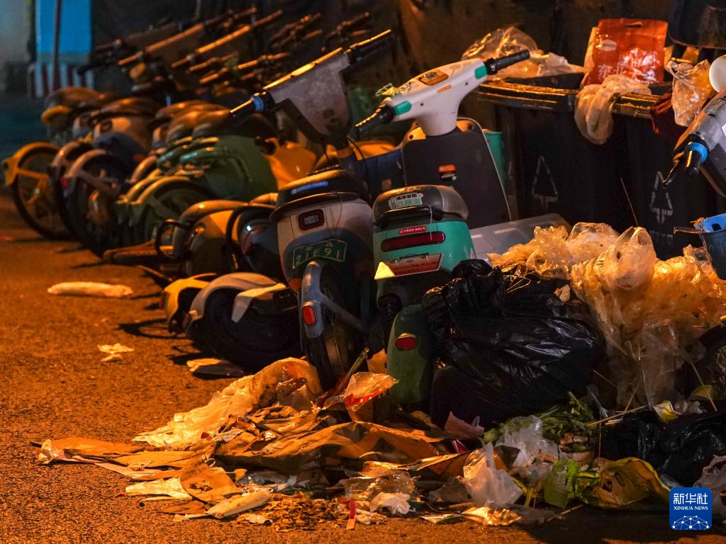 10月10日晚,在云南昆明某夜市,多个垃圾桶被塞满,残羹剩饭溢出,不仅造成食物浪费,也对周边环境卫生带来影响。