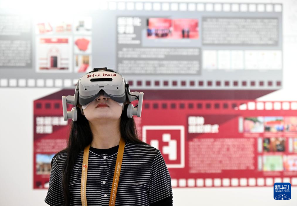 10月16日,与会人员在第十届中国国际版权博览会上体验“数字一大”VR演示。